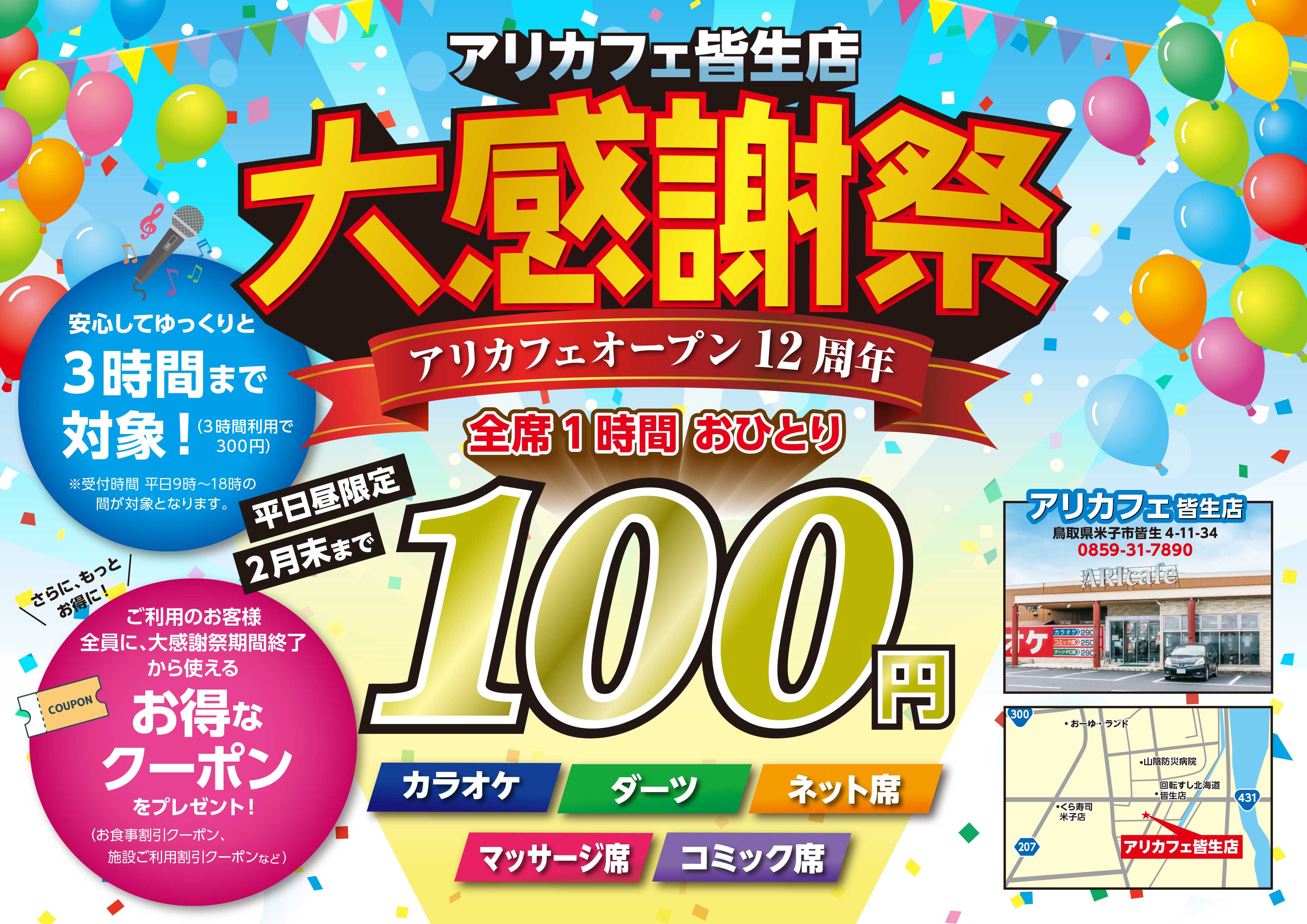 インターネットカフェ・カラオケルーム・ビリヤードなどを集約した「ARI Cafe(アリカフェ)」を出雲市・松江市・米子市に4店舗展開。幅広い世代に対し”ワクワクできる遊び空間”を提供しています。