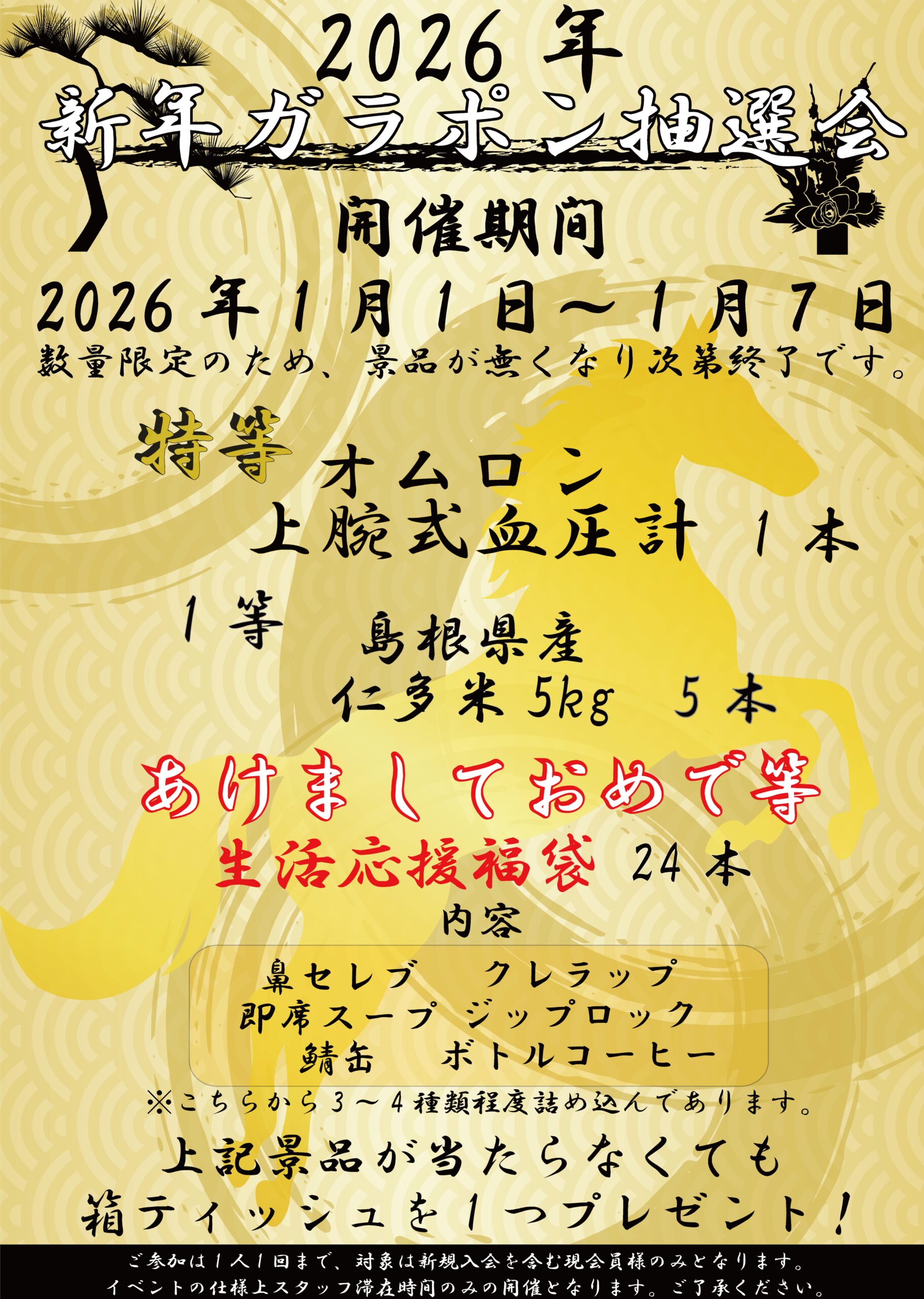 🟡 HF24出雲塩冶店 🎍 新春ガラポン抽選会 🎍